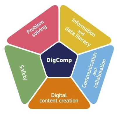 Der Referenzrahmen DigComp strukturiert digitale Kompetenz in fünf Bereiche, die wir für die Präsentation unserer Angebote weitestgehend übernommen haben.
