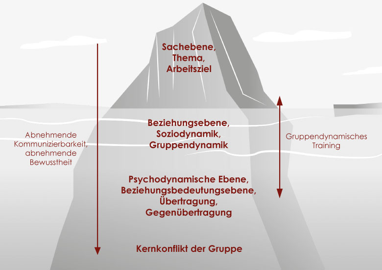 Das Eisbergmodell stammt ursprünglich aus dem psychoanalytischen (psychodynamischen) Umfeld, was an einigen der Bezeichnungen erkennbar ist.