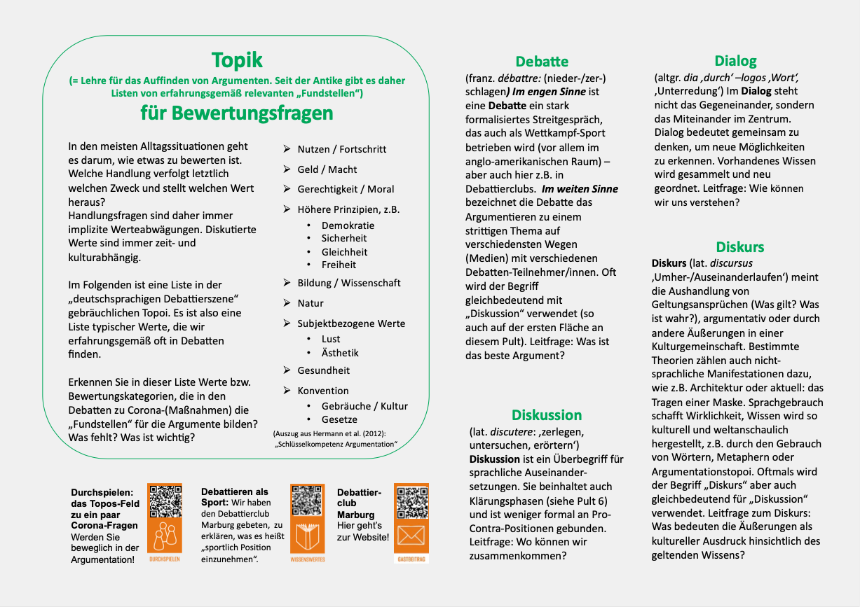 In diesem Bereich finden Sie ab Mai Pult 2 zu Aspekten des Argumentierens sowie Pult 3 zu Debatten und ihren Visualisierungen.