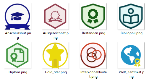 Bild: Für einen einheitlichen Look können Sie gerne die bereit gestellten Vorlagen nutzen. Alternativ können Lehrende aber auch eigene Bilder im PNG- oder SVG-Format hochladen, die sie extern gestaltet haben. Neben Grafikprogrammen am eigenen Rechner können dafür auch Online-Tools wie OpenBadges.me oder Badge Design verwendet werden.