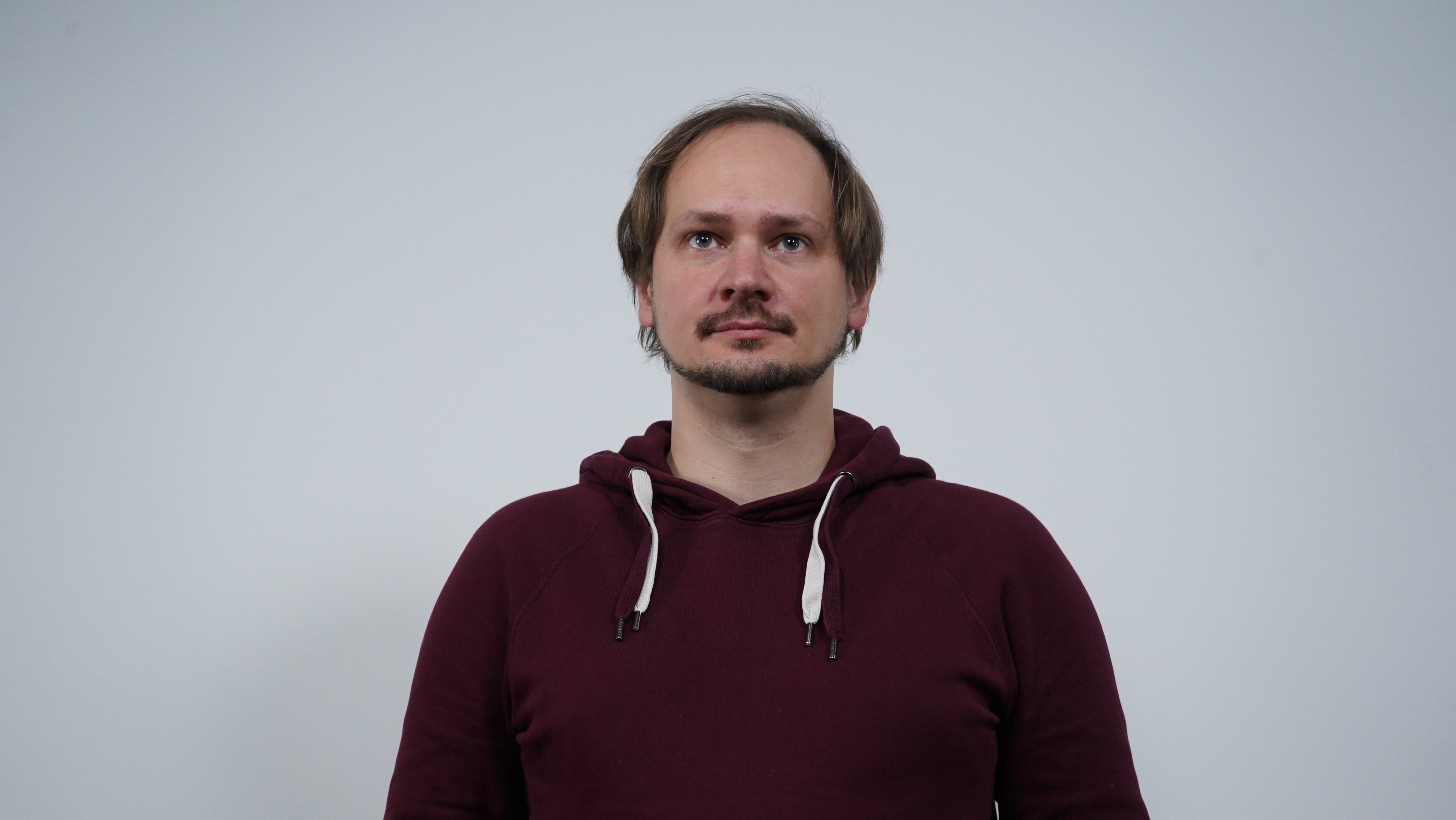 We find it most natural when a person is filmed at eye level or slightly above.