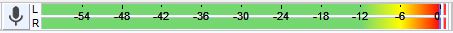 Die Aufnahmelautstärke wird durch einen farbigen Balken angezeigt, der diese Skala füllt. Wenn sich der Balken bei der Aufnahme in der Nähe der 0 dB. Grenze befindet bzw. rot gefärbt ist, dann ist die Aufnahmequelle zu laut. Die Aufnahme ist somit übersteuert und kann nicht mehr exakt wiedergegeben werden und klingt beim Abspielen kratzig / knacksend.