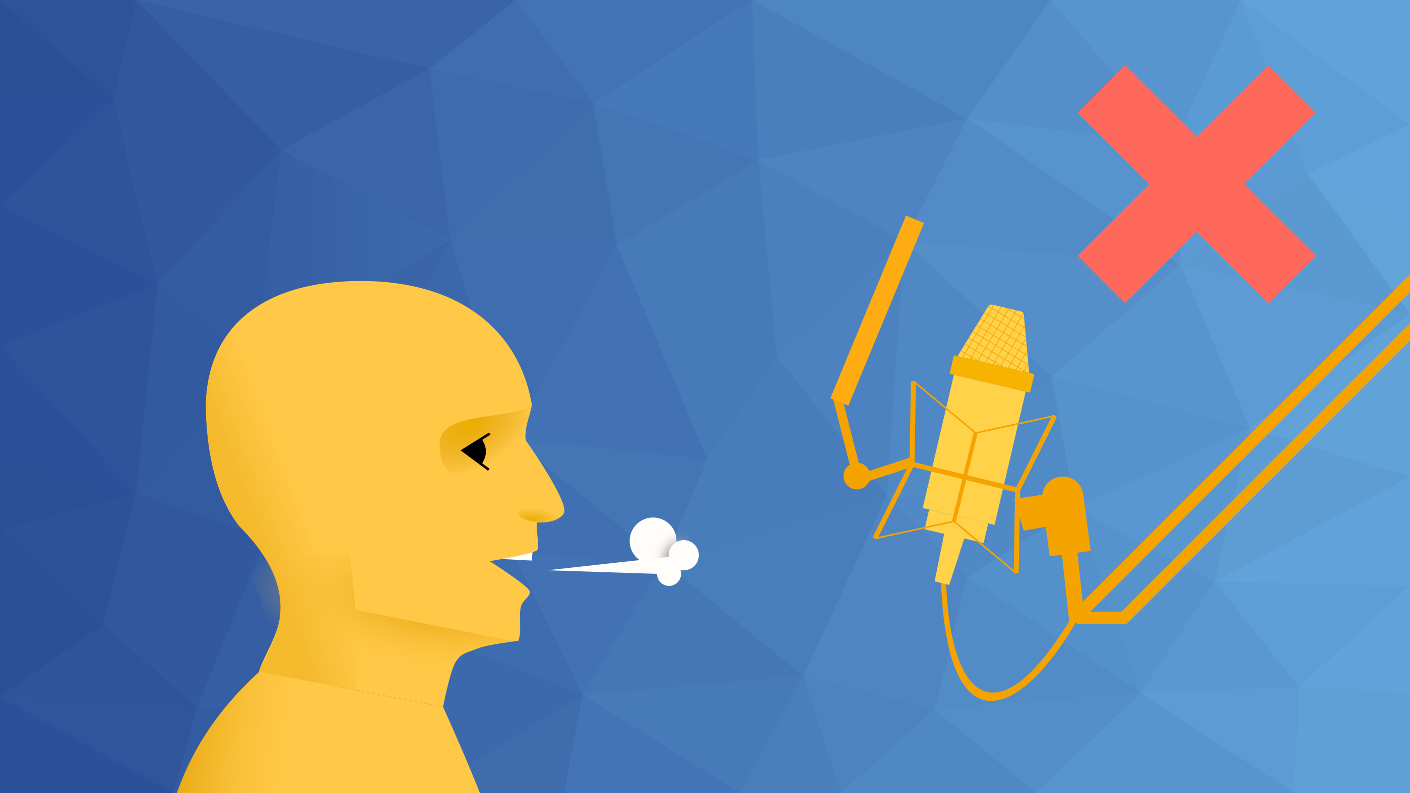 Wenn das Mirkofon nicht auf der Höhe des Mundes positioniert ist, wird der Stimmklang nicht optimal auf der Aufnahme erfasst (Abbildung: Ungünstige Mikrofonposition).