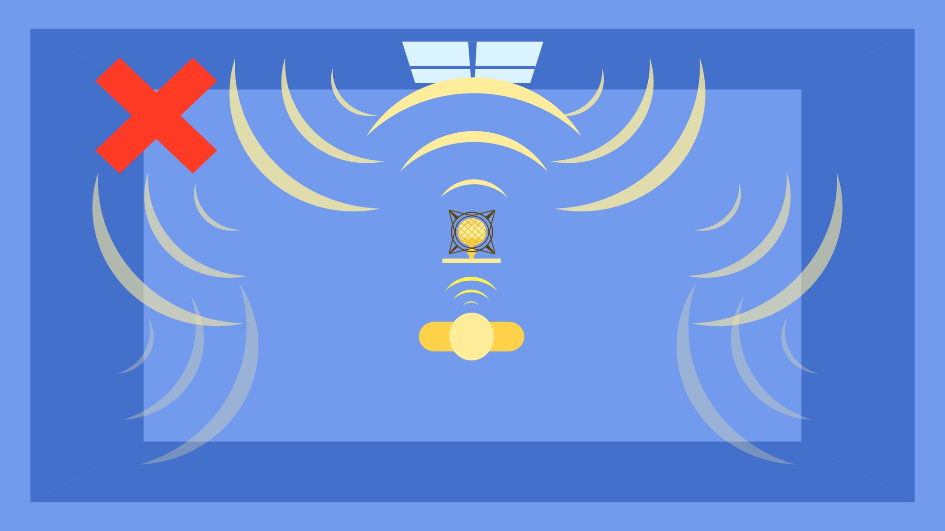 Hall: Es kommt manchmal vor, dass Sie in Ihrer Aufnahme ein Echo hören. Diese Geräusche lassen sich in der Nachbearbeitung nur schwer rausfiltern. Die Ursache liegt meist an der Ausstattung des Aufnahmeraums, in dem man sich befindet. Ist dieser Raum groß oder mit wenig stofflichem Mobiliar eingerichtet, so wird der Sprachschall von den glatten Oberflächen reflektiert und es entsteht ein Echo (Abbildung: Ungünstige Aufnahmesituation).