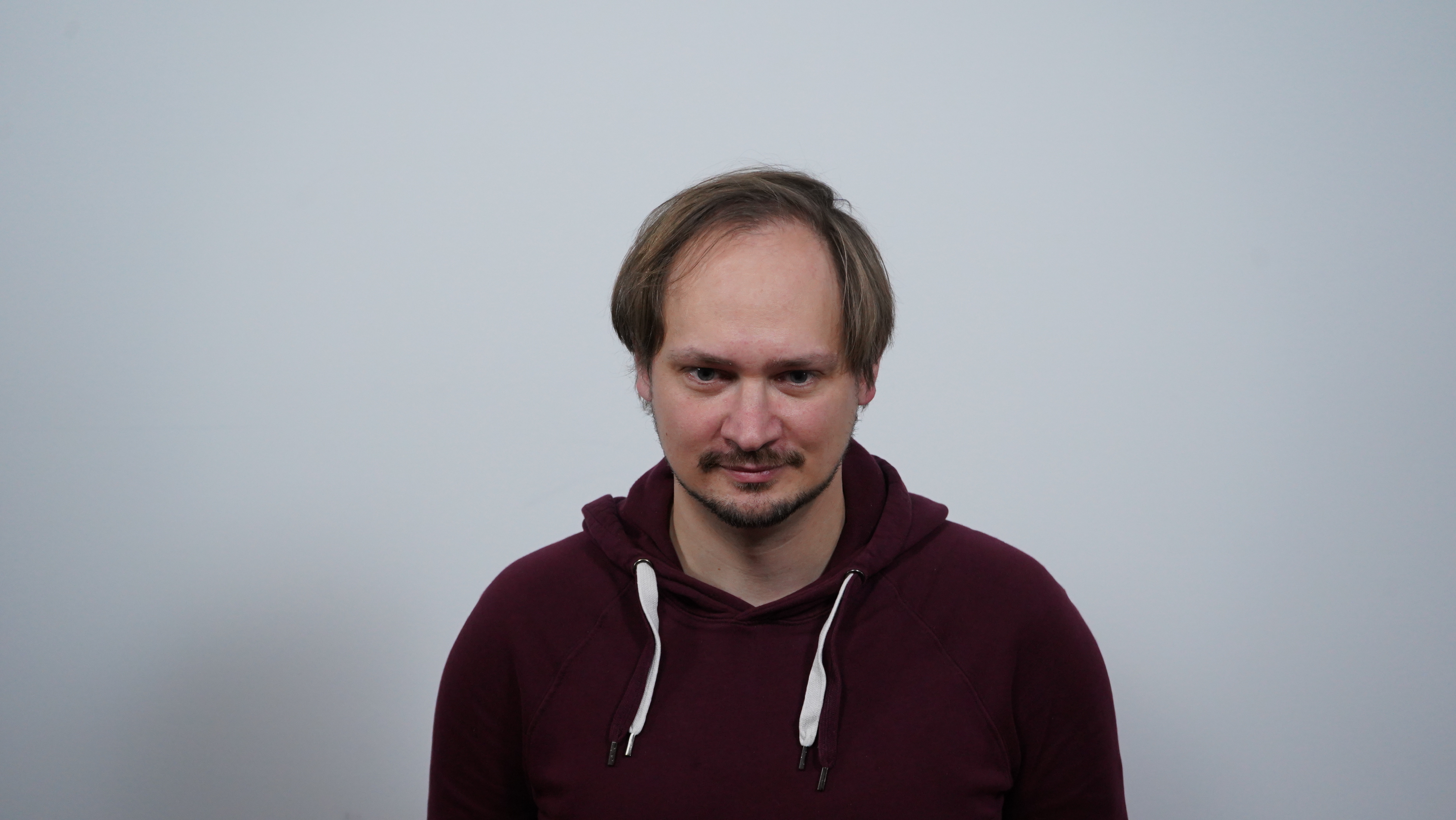 We find it most natural when a person is filmed at eye level or slightly above.