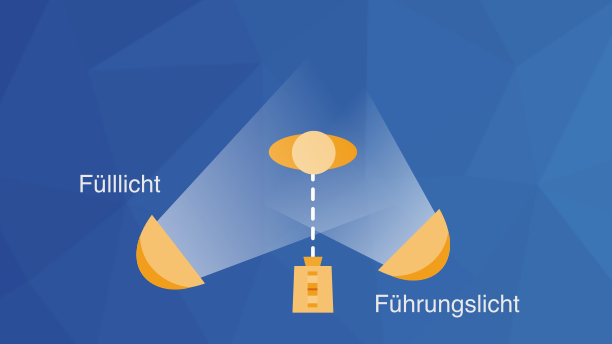 The guide light is the most important light and makes up the largest proportion. You can also film with just one guiding light. It is best if a large softbox with soft light is positioned slightly above the person from the side at a 45-degree angle.