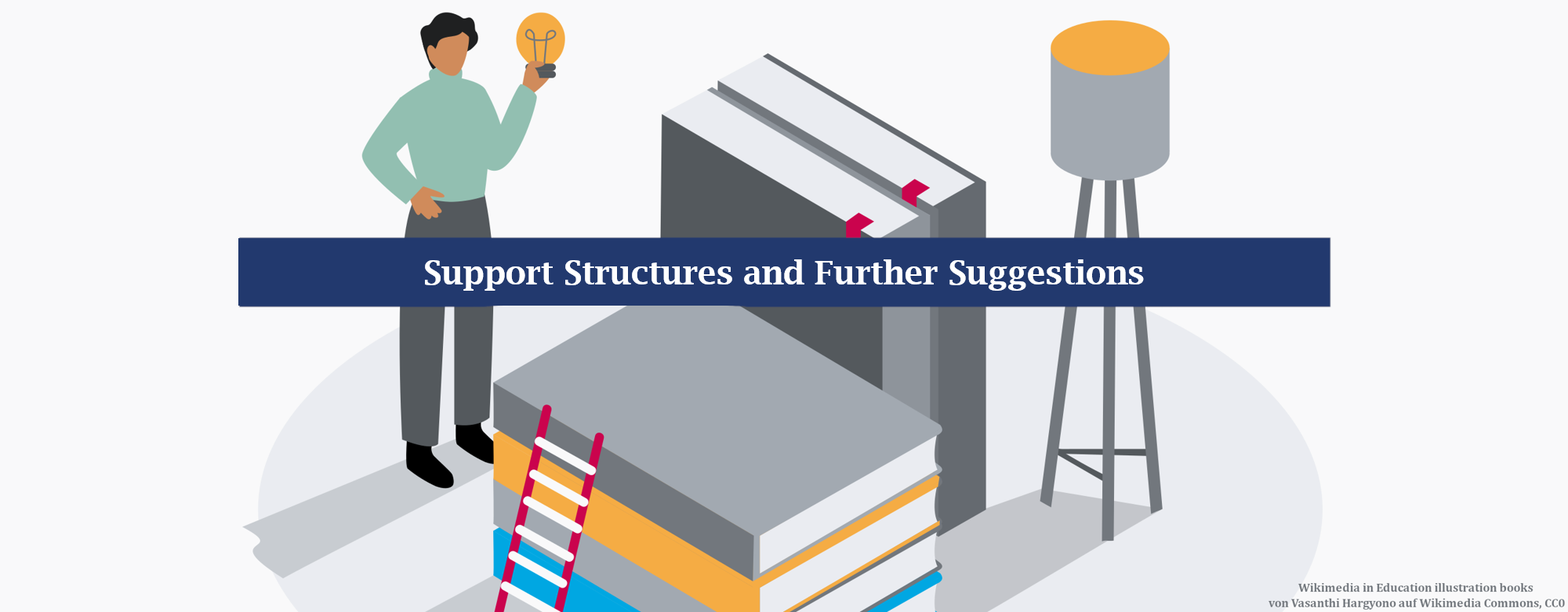 Tip: Instead of including materials such as essays or excerpts from books in your OER as you might do for an internal course, refer to suitable material, for example as follows: “The following text is particularly suitable for reading...”.