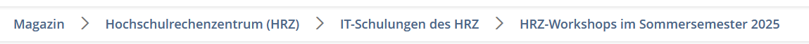 Die Positionsleiste ("Breadcrumbs") befindet sich unter der Kopfleiste und informiert Sie über Ihren aktuellen Standort. Sie können die Brotkrumennavigation auch zur schnellen Navigation nutzen, indem Sie auf den gewünschten Zielort klicken.