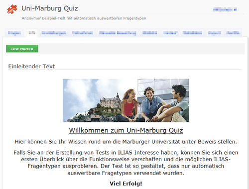 Uni-Marburg Quiz als Beispiel-Test