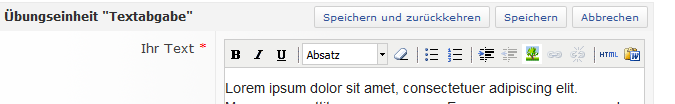In diesem Editor können auch kleinere Formatierungen vorgenommen und Bilder eingefügt werden. Wenn Sie die Funktion nutzen wollen, machen Sie Ihre Studierenden am besten auch auf den Session Reminder aufmerksam, den man in den persönlichen Einstellungen aktivieren kann oder raten Sie dazu, den Text offline zu verfassen und in den Editor zu kopieren.