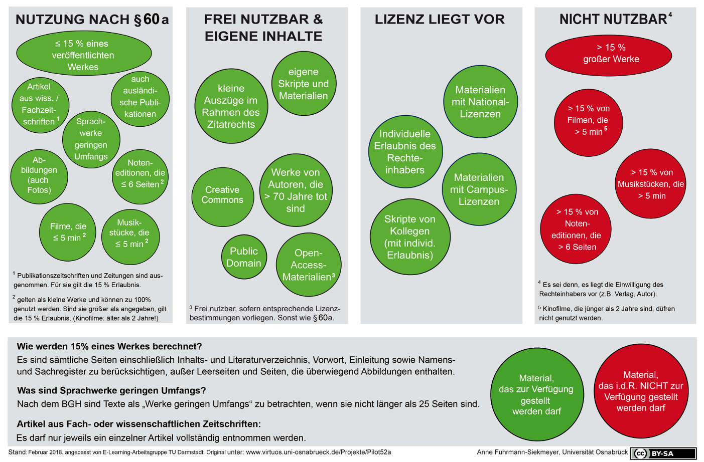Das unten stehende Schaubild gibt einen leicht verständlichen Überblick über die ab März geltenden Regelungen, unter denen elektronische Materialien in ILIAS zur Verfügung gestellt werden können.