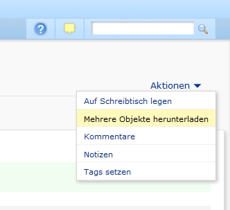 Herunterladen: Das Aktionen-Menü eines Kurses, einer Gruppe oder eines Ordners (rechts oben) bietet jetzt die Option "Mehrere Objekte herunterladen". Nach Aktivierung lassen sich mehrere Dateien (oder Ordner) auswählen und als ZIP-Datei herunterladen.