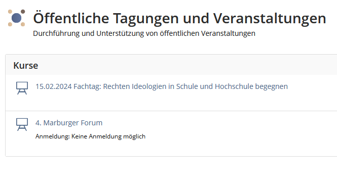 Haben Sie Fragen zu den öffentlichen Bereichen? Melden Sie sich gerne bei uns: ilias@uni-marburg.de