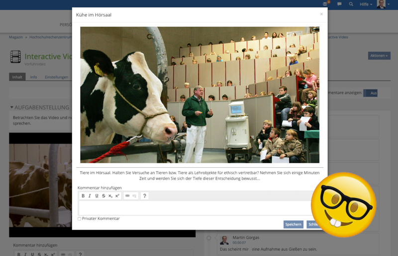Studierende können während der Ansicht der Videos Zeitmarken setzen und Kommentare hinterlassen. Lehrende können Fragen zu den Inhalten an bestimmten Stellen einspielen.
